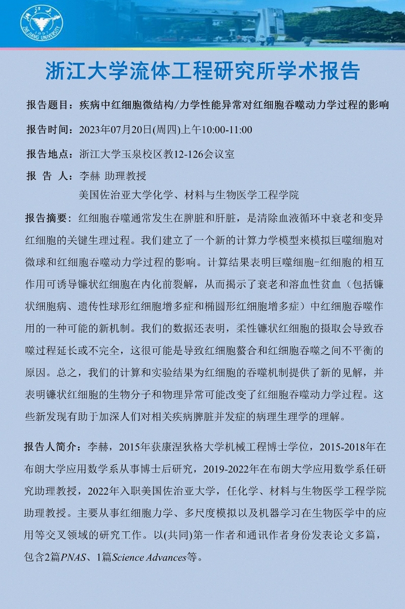 University of Georgia李赫博士報告通知(2023.7.20 10:00-11:00)
