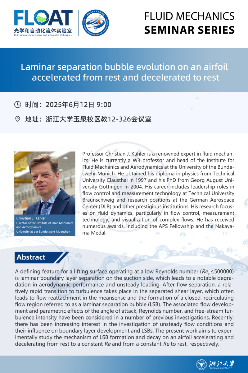 2025.06.12 Laminar separation bubble evolution on an airfoil accelerated from rest and decelerated to rest Christian J. K?hler Director of the Institute of Fluid Mechanics and Aerodynamics University at der Bundeswehr Muenchen