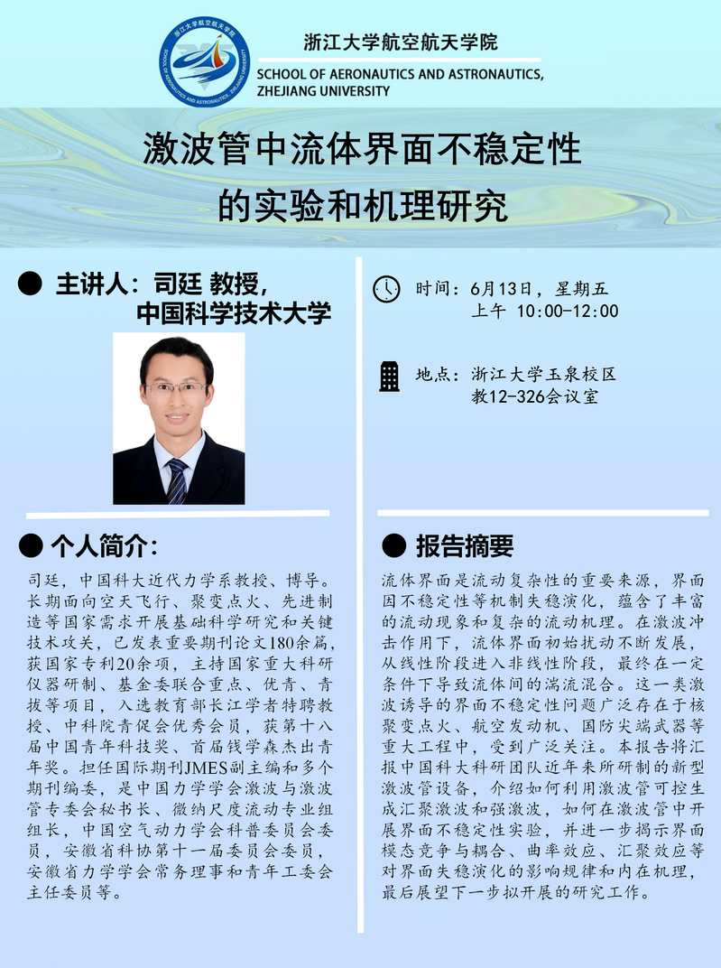中國科學技術大學 司廷教授學術報告通知(2025.06.13)